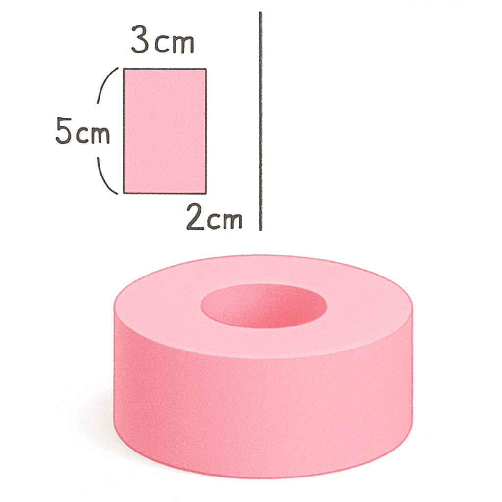 長方形を軸から離して回転させるとバームクーヘンのような図形になります。