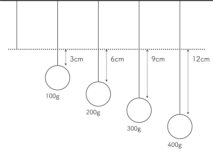 つりあいの位置から 3cm 離れたところに 20g のおもりをつりしたとき、つりあいの位置から 6cm 離れたところに何 g のおもりをつるせば、つりあうでしょうか?