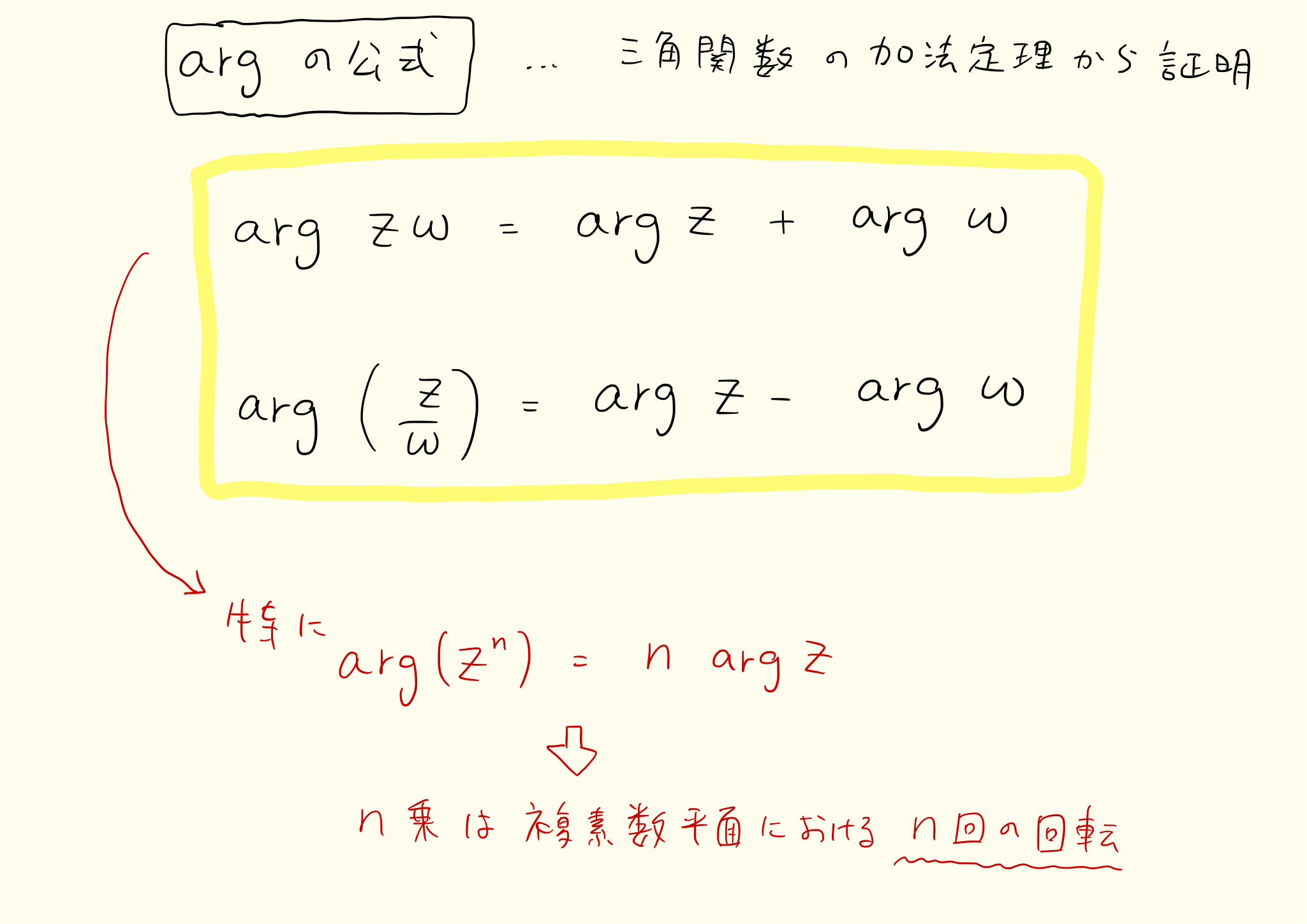 複素数平面の公式まとめ(共役、絶対値、arg、ド・モアブルの定理)