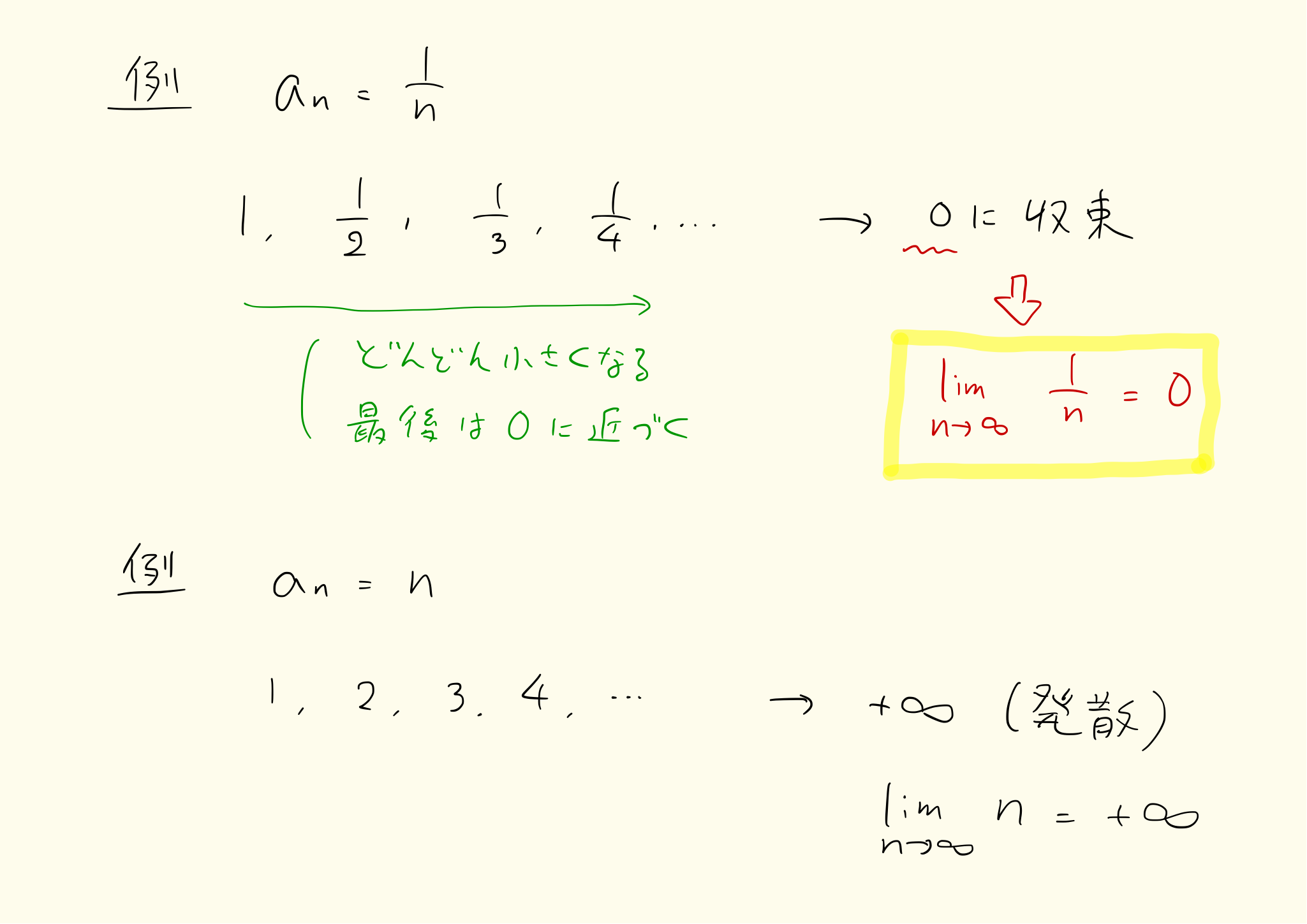 一定の値に収束するとき、数列は収束します。例えば最初からずっと1の数列