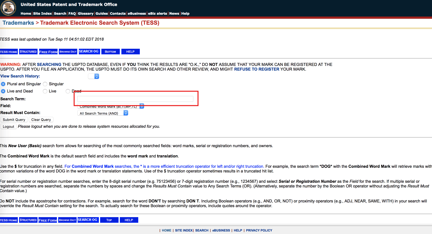 アメリカの商標登録を確認する方法(uspto / TESS)
