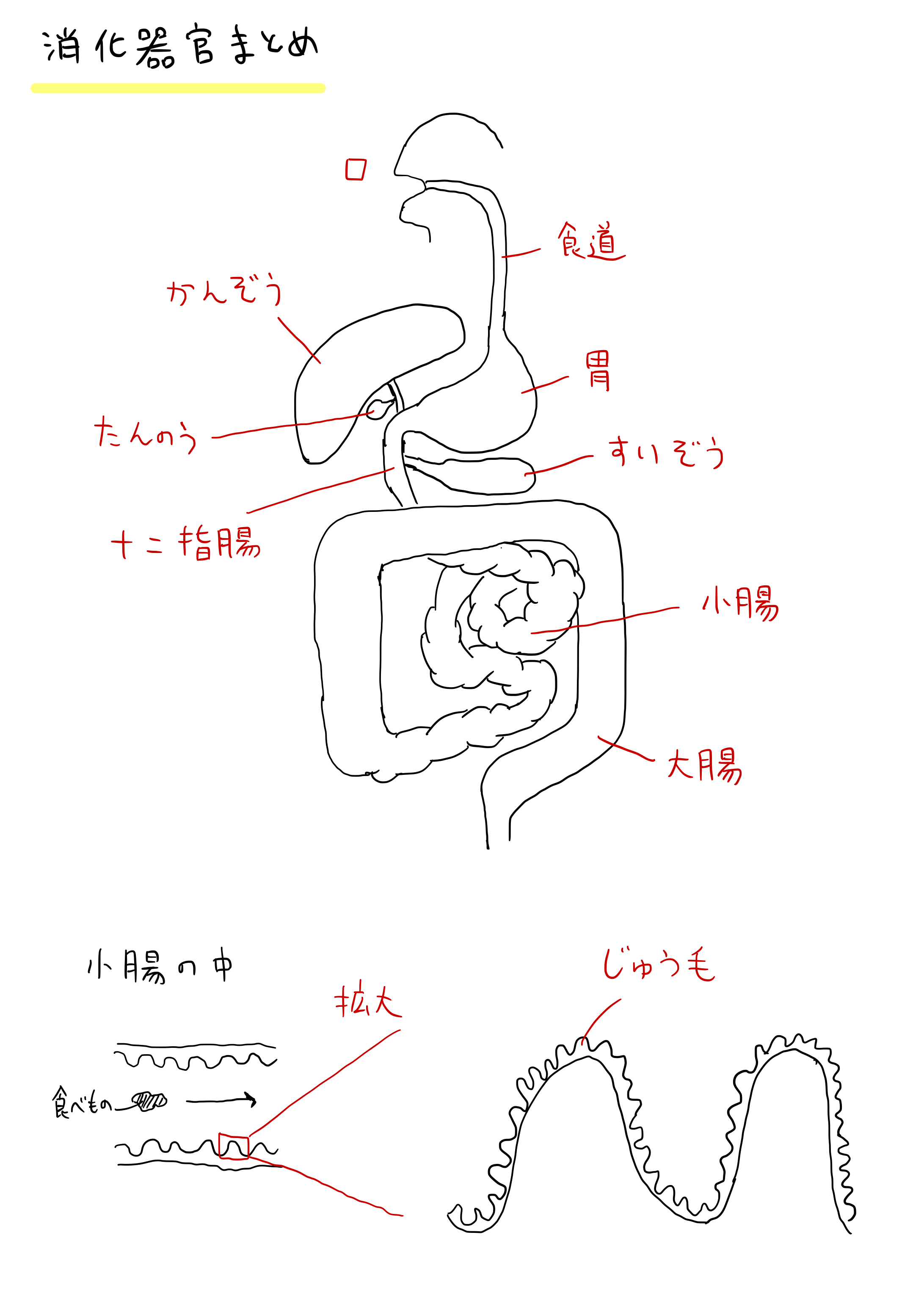 - 小腸 → 栄養分を吸収