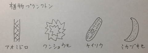 水中には小さな生物がたくさんいます。その中にプランクトンがいます。プランクトンは植物プランクトン、動物プランクトン、そしてミドリムシがあります。