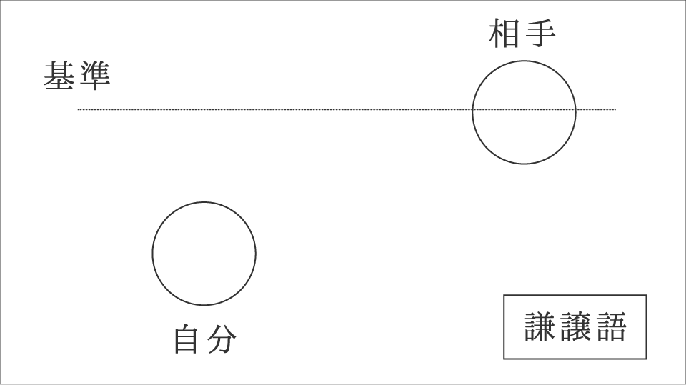 どっちも結局は「相手を自分より上にする」言葉ですが、基準が違います。下図を見てください。