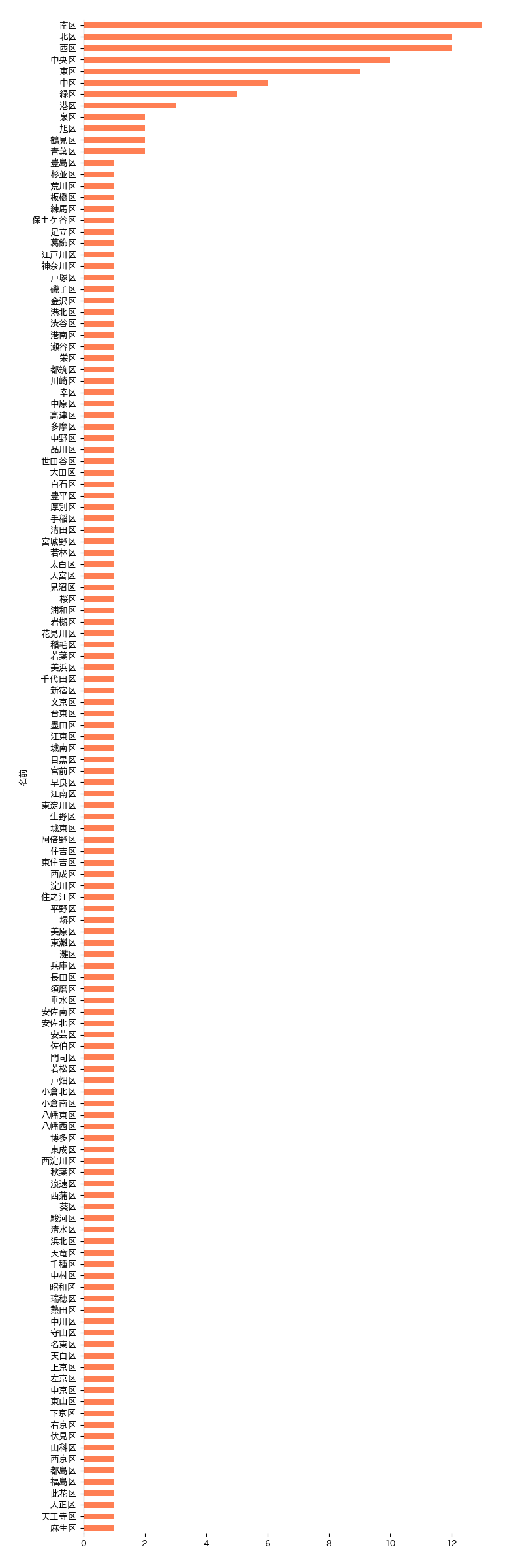 日本の区一覧とよく使われる区名の頻度:日本には南区が13区もある