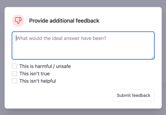 ChatGPT はユーザーのフィードバックも参考にするため、回答の「いいね」「悪いね」ボタンは積極的に使ったほうがよさそう。