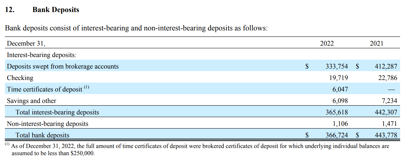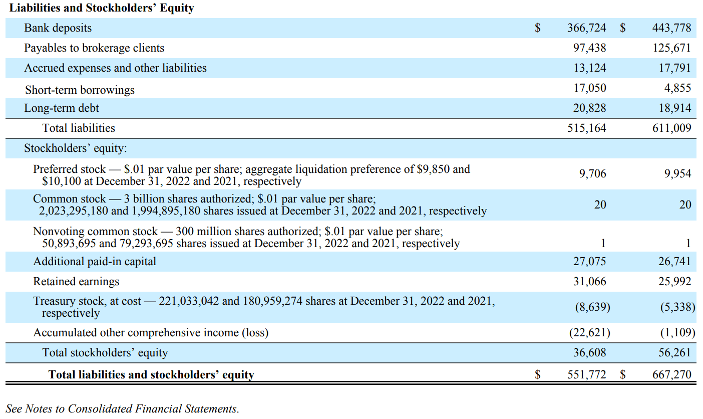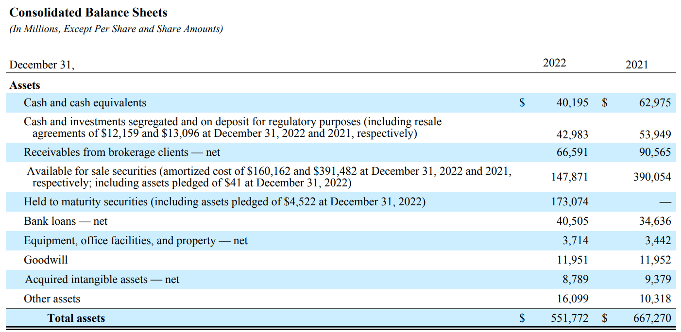 Charles Schwab の財務諸表を調べました。以下の書類は Charles Schwab の提出した Form 10-K です。単位は Million。