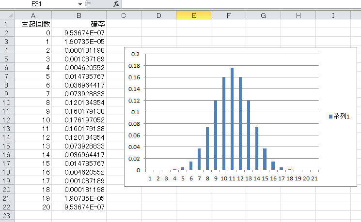 エクセル(Excel)の確率計算例
