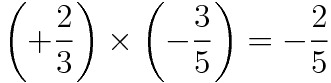 プラスやマイナスという符号をとって計算すると上のようになりました。後はこれに符号(プラスかマイナス)をつけるだけです。どっちをつけるかは、マイナスの数で決まります。上の例ではマイナスが一つでした(3/5についているマイナス)。マイナスが一つのときは答えもマイナスになります。