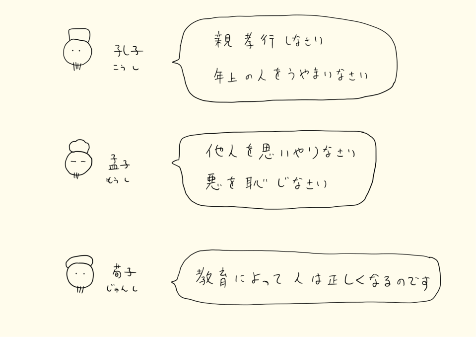 荀子は孔子から続く儒家の思想を引き継ぎながらも、孟子と異なり性悪説の立場をとりました。