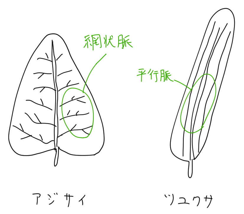 - 網状脈 … 脈が網目のようにはっている。