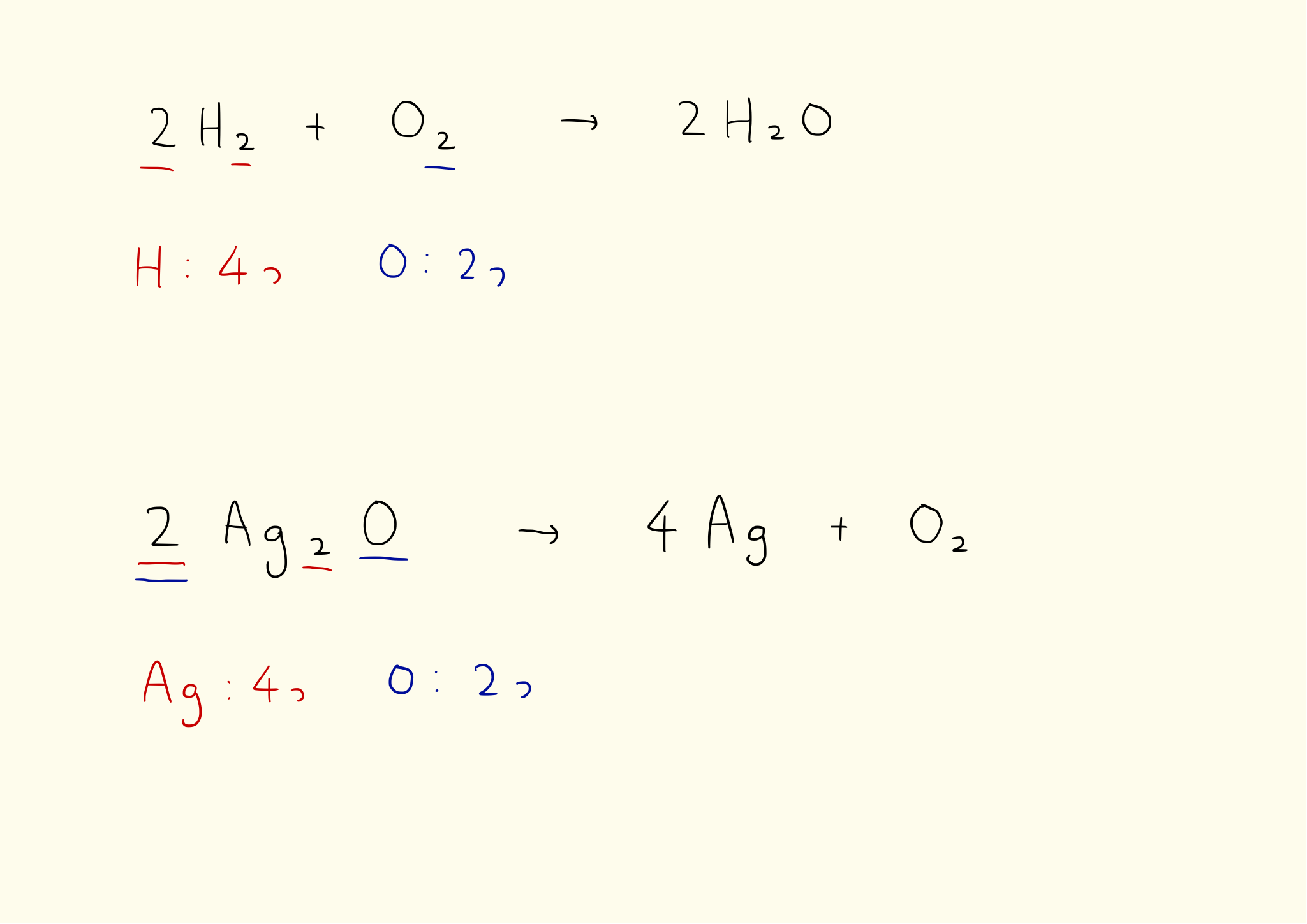 化学反応を化学式で表したものを化学反応式という。酸化銀を熱分解すると銀と酸素になるが、以前はこれを次のように書いた。