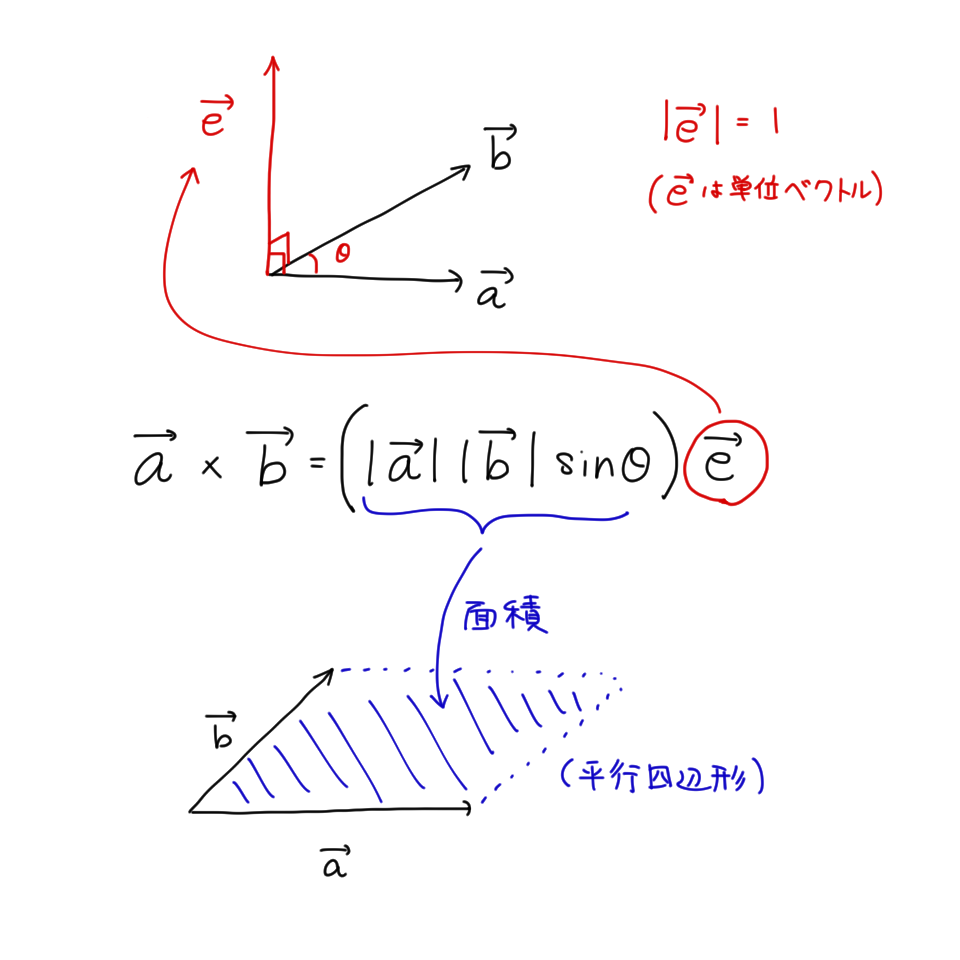 外積の大きさはベクトル と がなす平行四辺形の面積になっている。