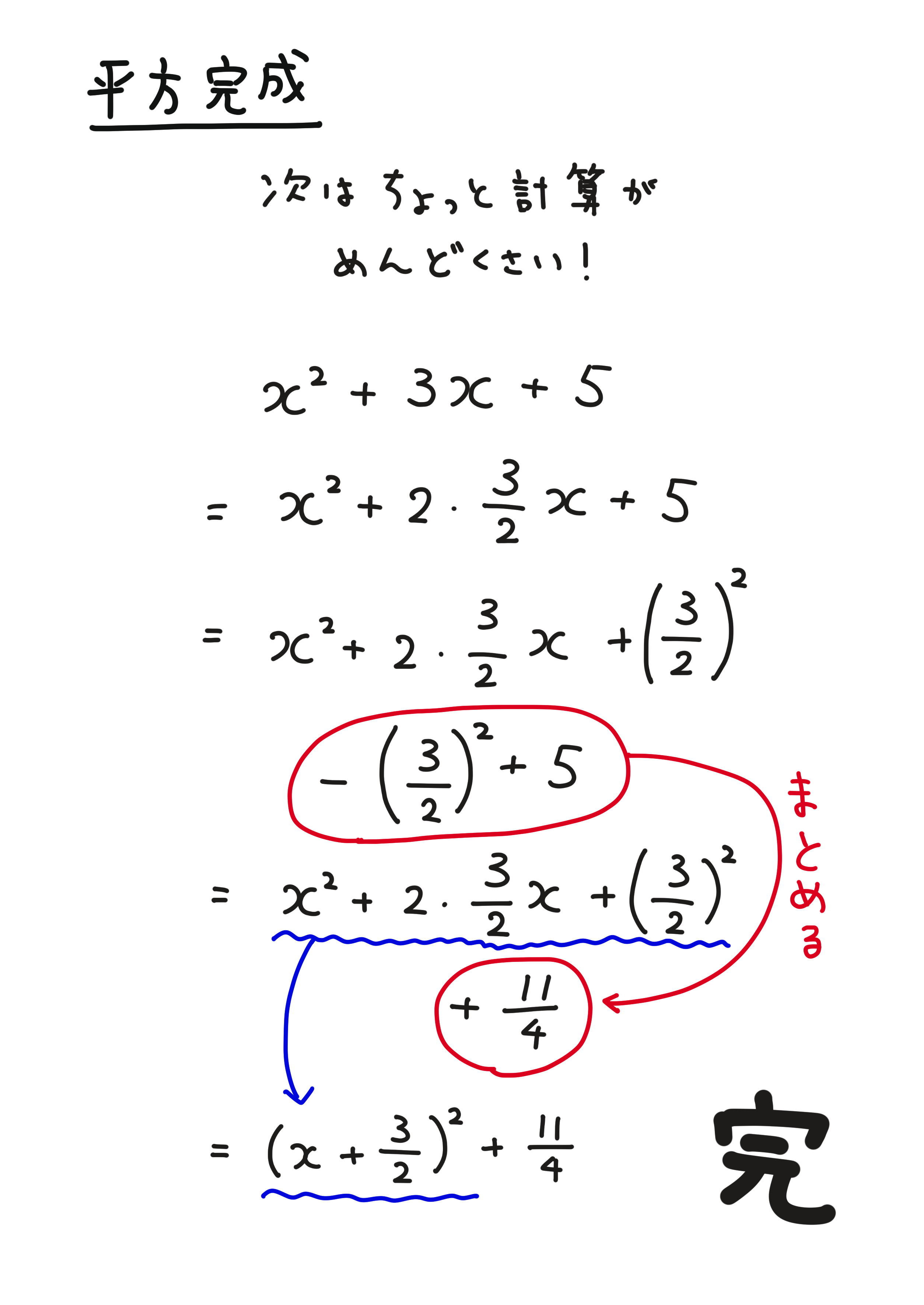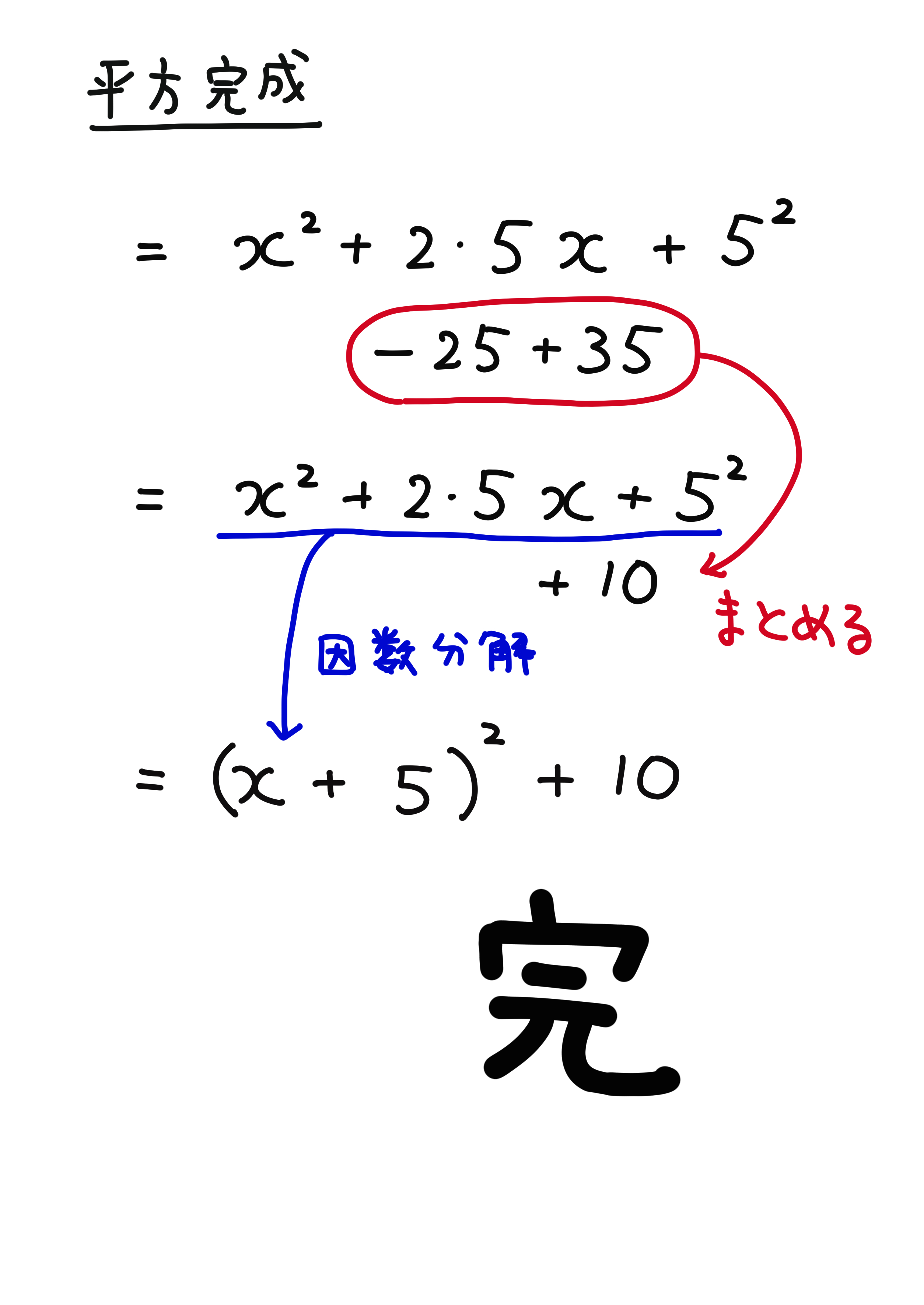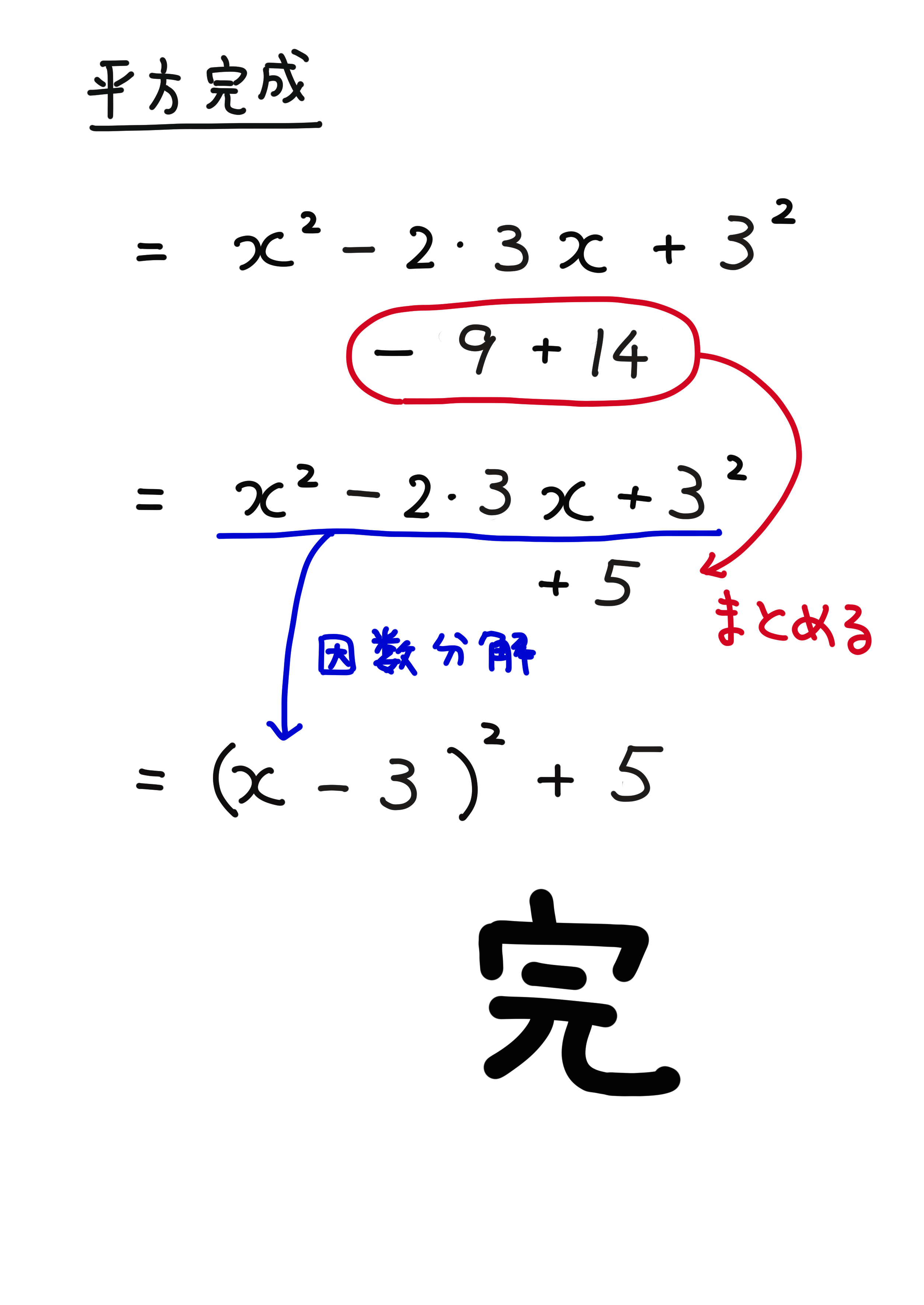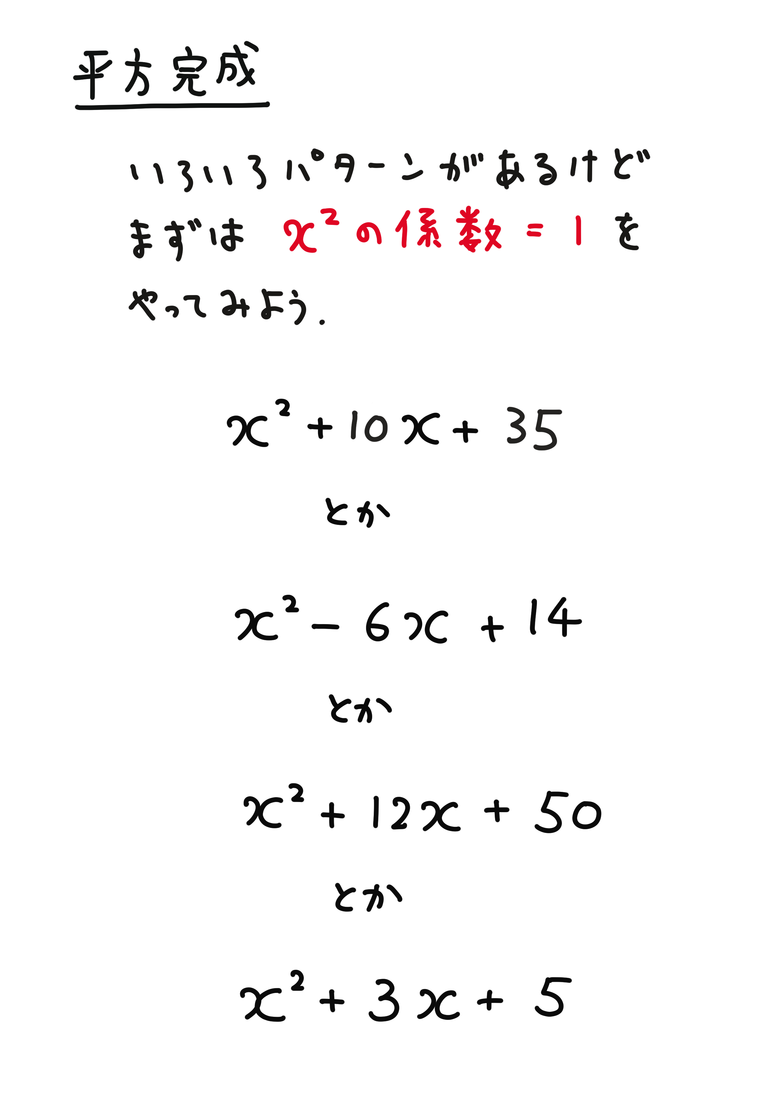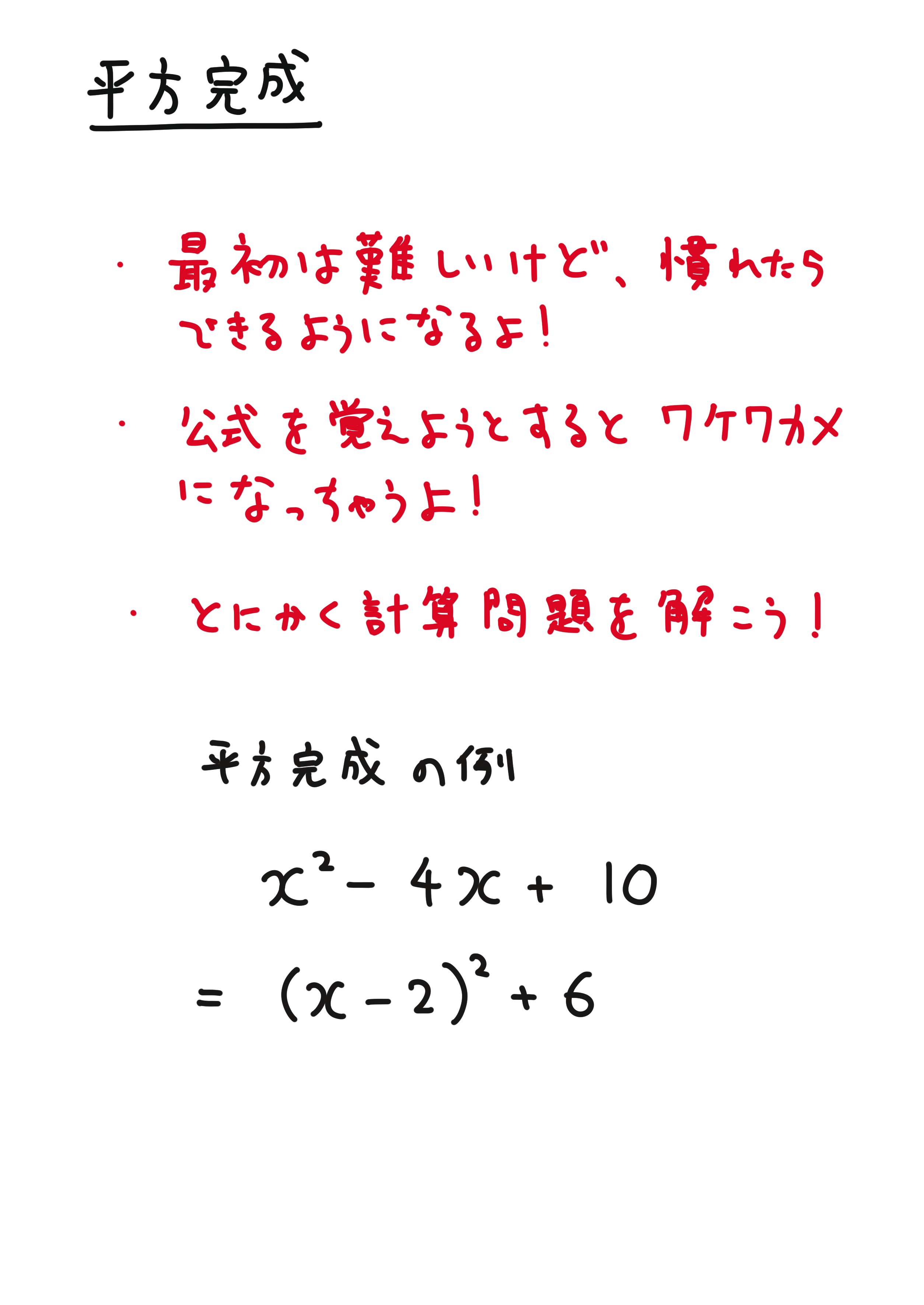 平方完成の解き方(公式と計算問題)