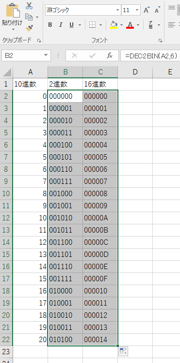 エクセルで10進数を別の進数に変える場合、次の関数を使う。