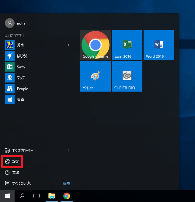 最初の方法より少し手順を踏むが、「設定」画面からもアンインストールできる。Windowsボタン(設定を変更していなければ画面の左下にある窓のようなボタン)を押し、「設定」ボタンを押す。