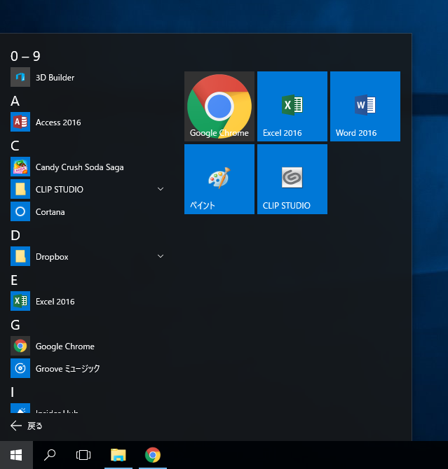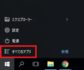 Windowsボタン(設定を変更していなければ画面の左下にある窓のようなボタン)を押し、「すべてのアプリ」ボタンを押す。