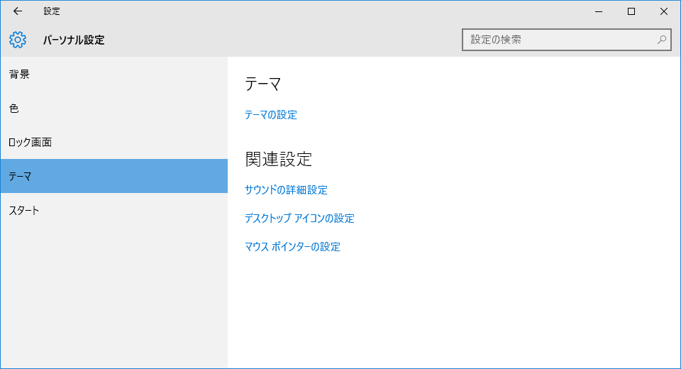 左のメニューの[テーマ]から[関連設定]の[マウスポインターの設定]を選択すると次の画面が出てくる。