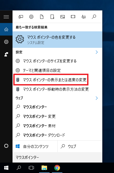 上記の手順でもマウスポインターの設定画面を出せるが、検索機能を使うほうがより手軽である。