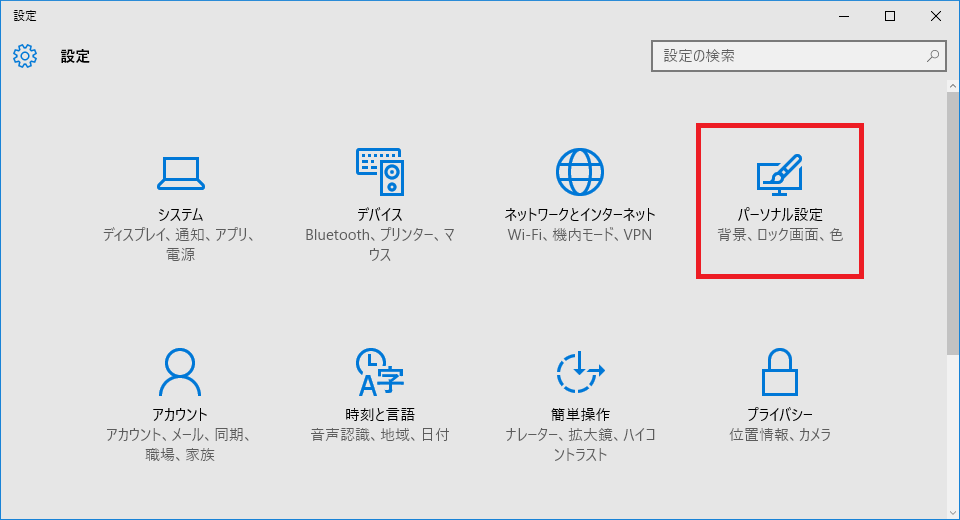 [設定]→[パーソナル設定]を選択。