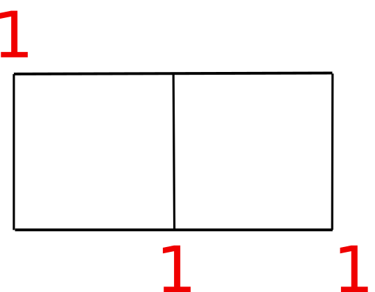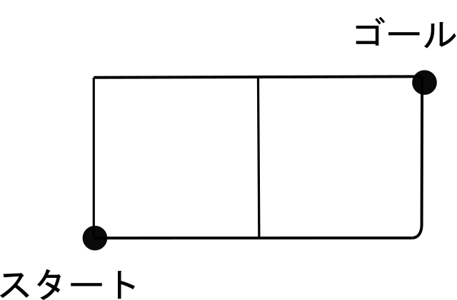 道がマス目のようになっているときに、スタートからゴールまでの最短経路の場合の数(行き方)を求めてみます。まずは縦1マス、横2マスの長方形の道から。
