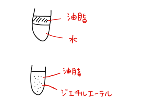 油と水という言葉があるように、油脂は水に溶けない。また油脂は水より軽い。
