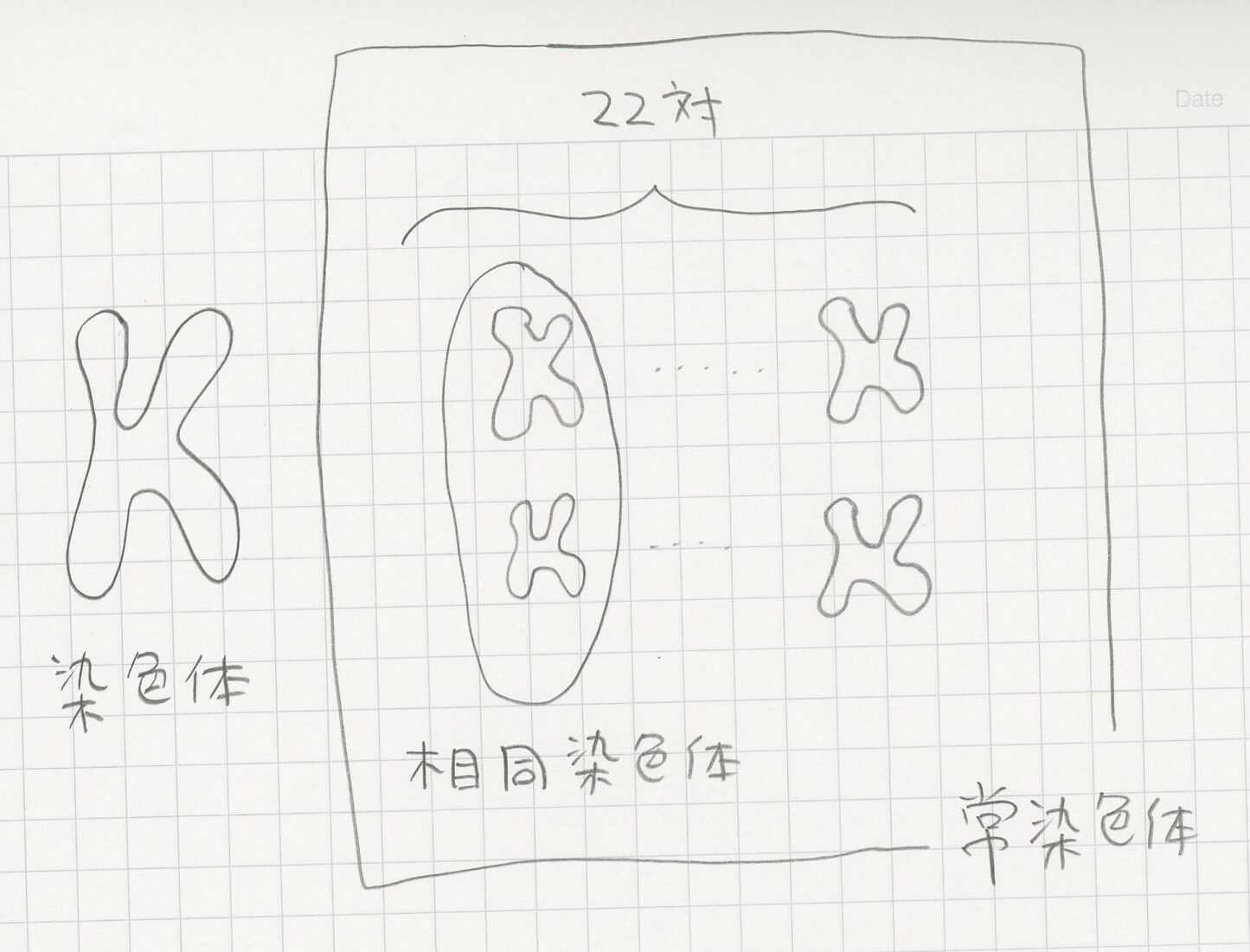 22対44本の常染色体と2本の性染色体(高校生物・DNA)