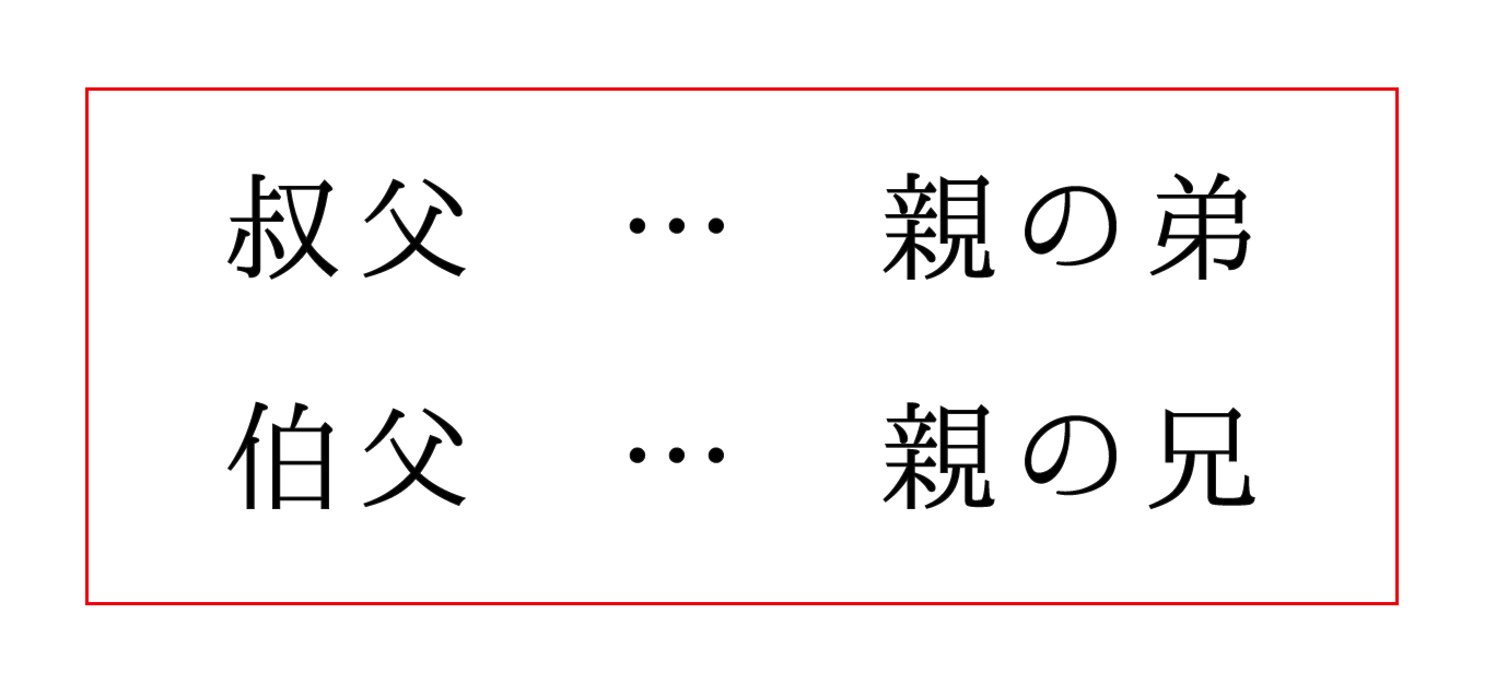 叔父と伯父の違い:父母の弟は叔父、兄は伯父と書く