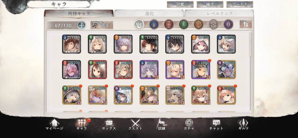 メメントモリ、微課金だと半年でレベルリンクが240を超えてLRは8人になる