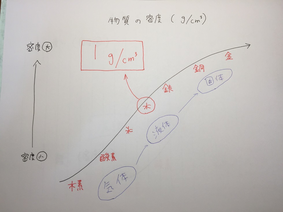 密度の公式と水、氷、金属の密度(浮く、沈むの問題)